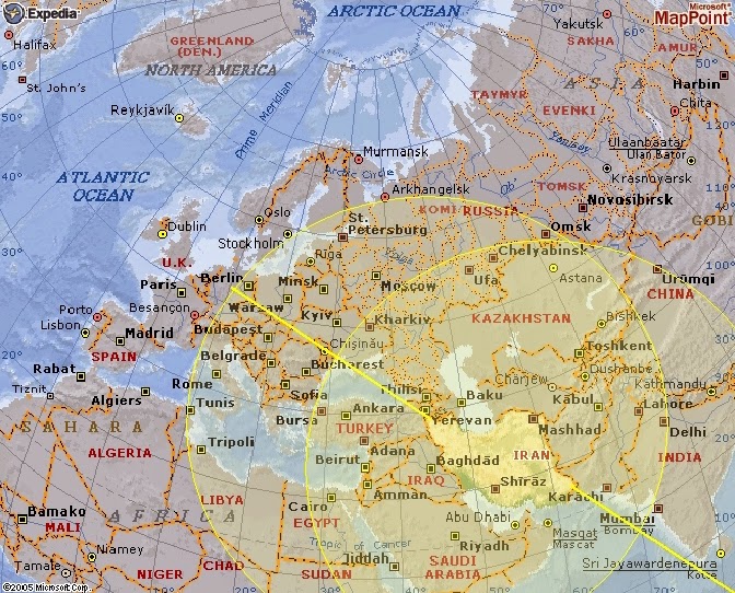 Hur långt når Irans vapen? EU har inte sett denna kartan, från länk.